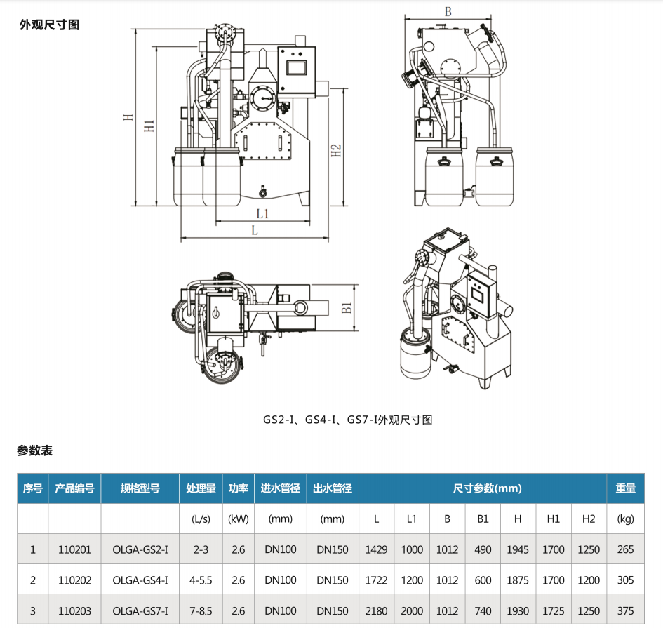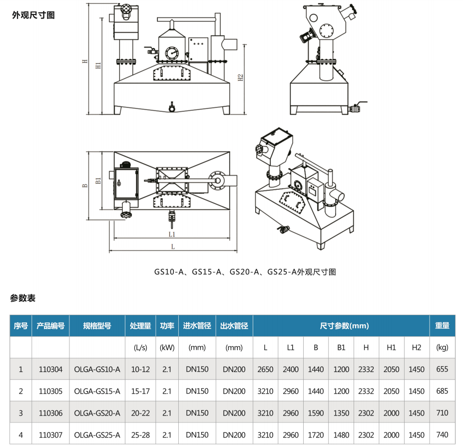 GS2-A型表示自動型,處理量為2L/S,即7.2m3/h;